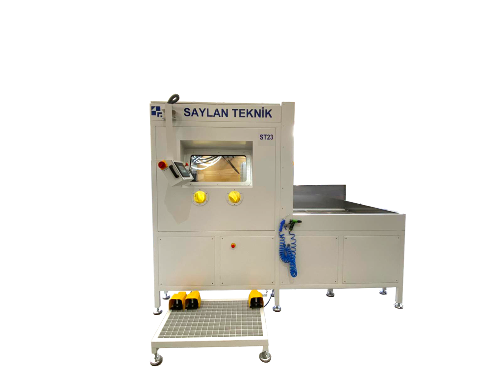 Almin Alüminyum’da ST8 Yıkama Havuzlu, Sehpalı Döner Tablalı Manuel Sulu Kumlama Makinası devreye alındı