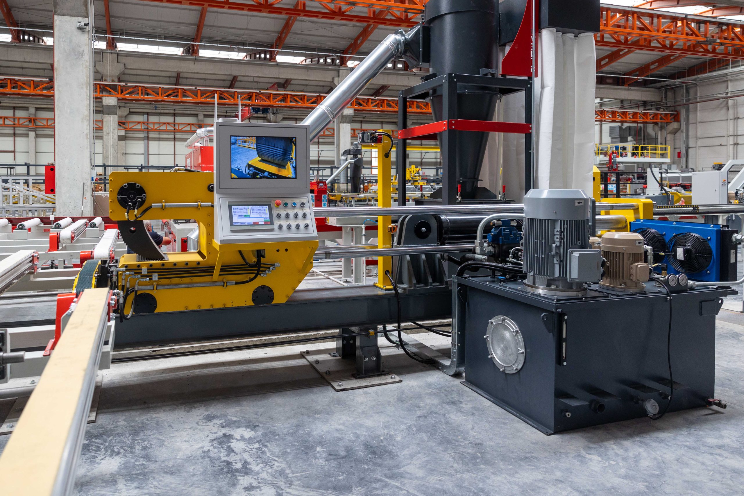 The stretching unit is used to straighten non-linear profiles coming out of the extrusion press by gripping both ends of the profile and applying a critical level of tensile force to bring it into a linear form.